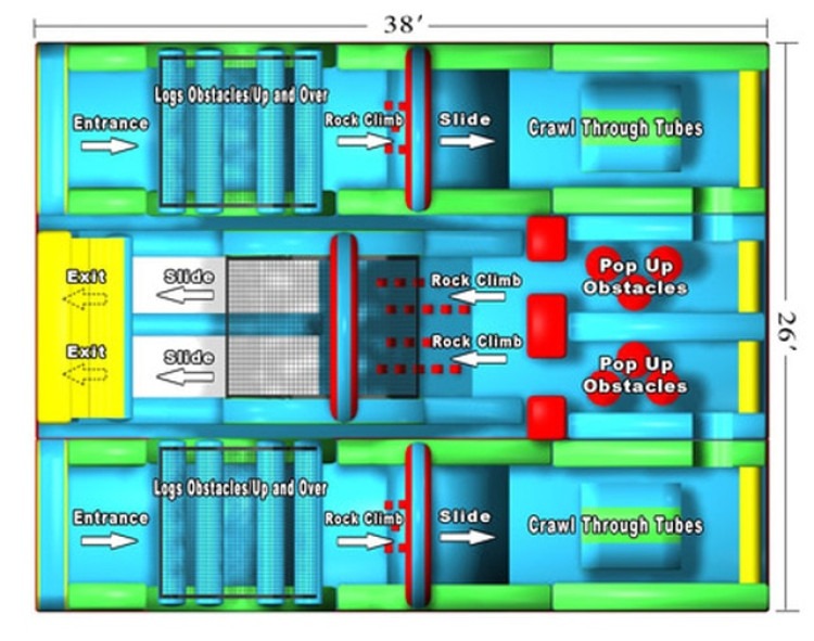 Race your friends and family to the end!!! This is one of the worlds most popular obstacle courses: The Adrenaline Rush II. Participants simultaneously race their way through log crawls, rock climbs, slides, crawl tubes in a race to the finish to be the ultimate champion! Great for all occasions including birthday parties, corporate parties, fundraisers, church parties, and charitable events.