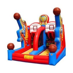 Shooting Stars BasketballSports Package:Shooting Stars Basketball1Dropdown12869635_2863471010 Shooting Stars inflatable basketball game will have participants offering up their best shots, in this dueling basketball game unlike any other. Each player can engage in a crossover shooting action as they try to make baskets, and as the ball returns from each shot, it makes it to the opponent's lane. The first player to get rid of all their basketballs rule this inflatable court! The Shooting Stars inflatable game is a great way to promote exercise, healthy competition, and sportsmanship. It is a fun addition to any birthday party or event! Game On!